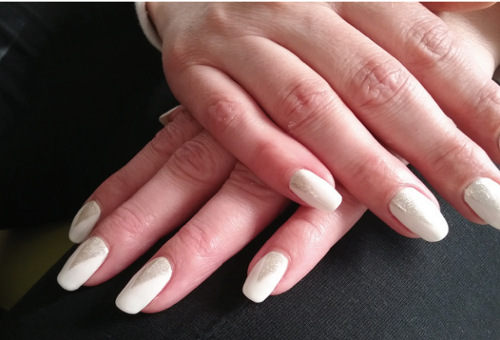 Postopek zajema: oblikovanje nohtov, urejanje obnohtne kožice, nanos Gelisha in po želji Nail art